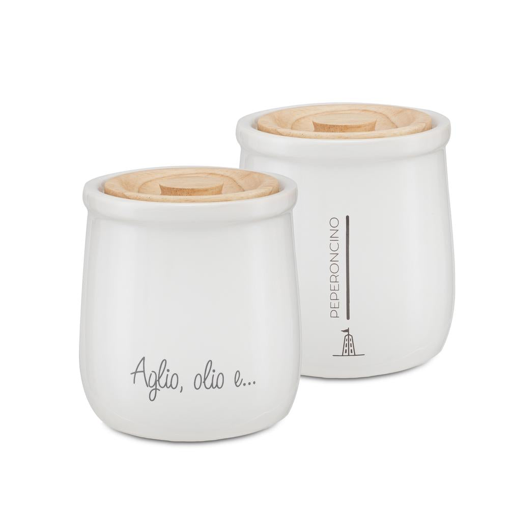 PORCELLANA BIANCA - Gli Onesti Barattolo Peperoncino In Stoneware E Legno Di Quercia 180 Ml