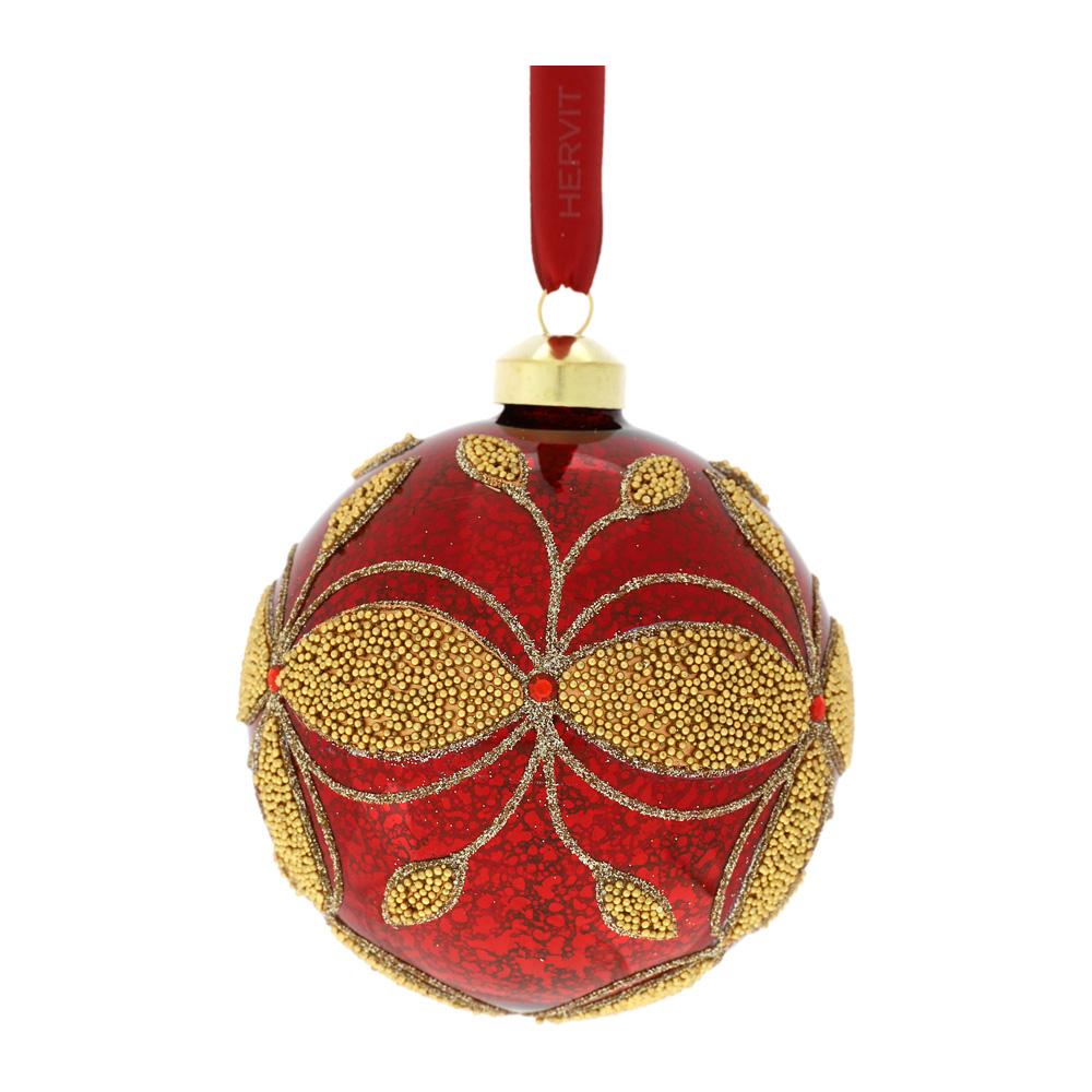 HERVIT - Sfera Vetro Soff.Dec.Fleur Dia.10Cm Ross