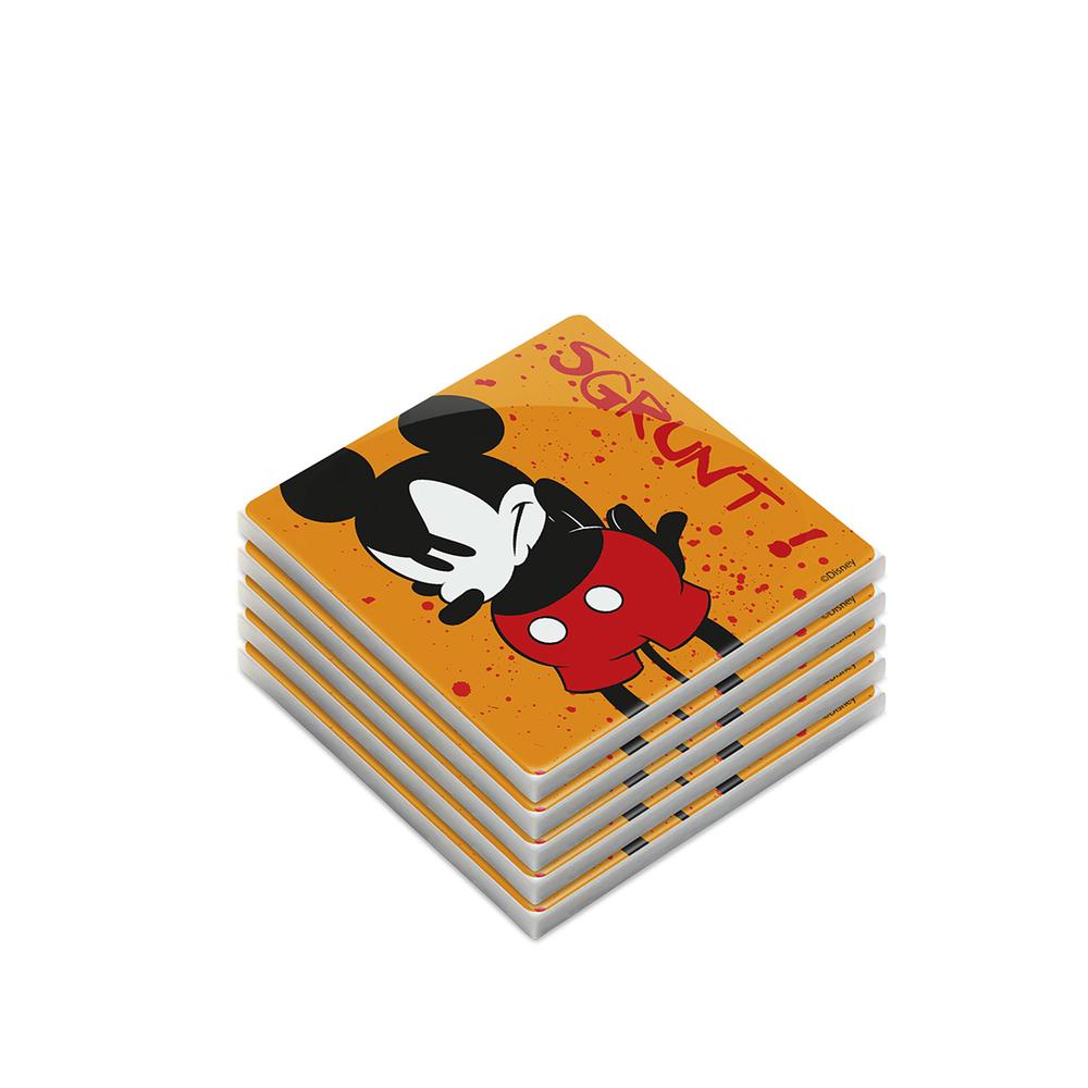 EGAN - Set 5 Sottobicchieri Mickey Mouse I Am Arancio In Ceramica Smaltata E Fondo In Sughero 9,5X9,5 Cm