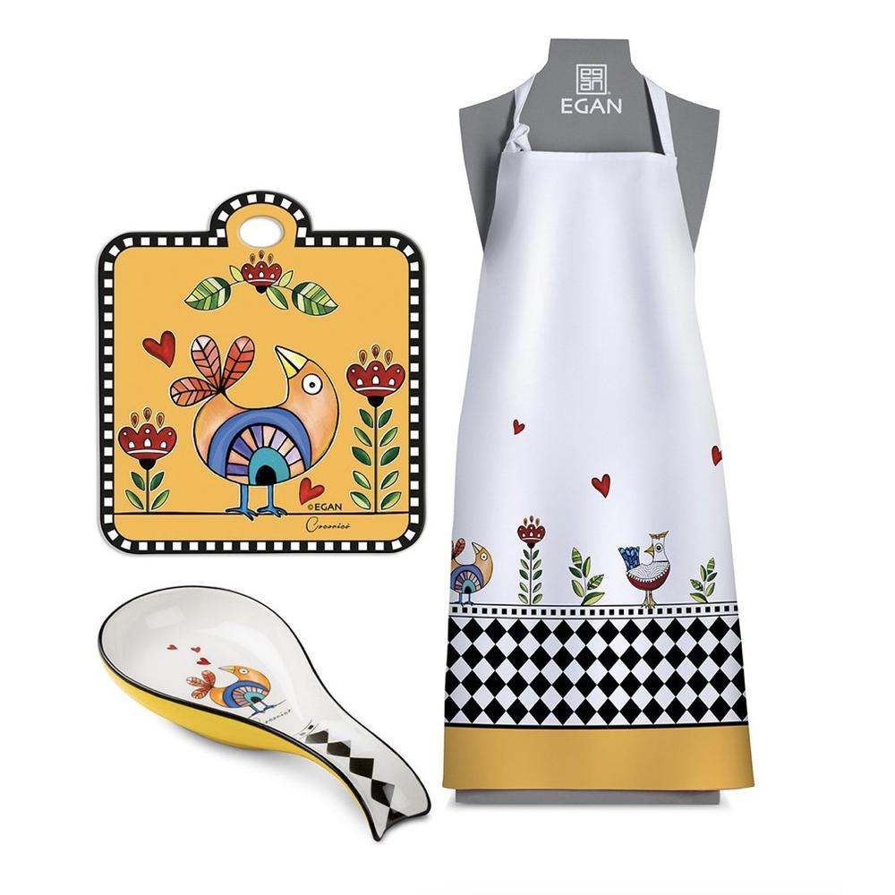 EGAN - Set Grembiule+Sottopentola+ Poggiamestolo Cocorico'