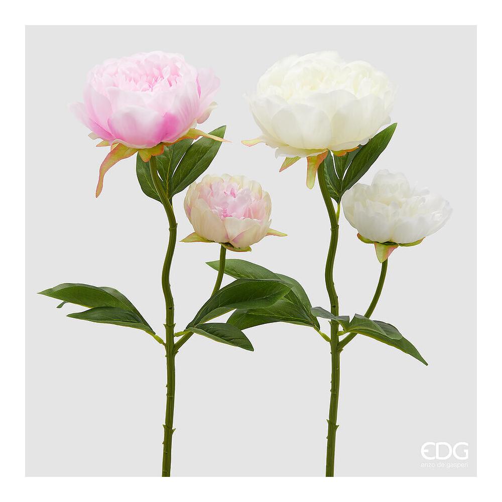 EDG - Peonia Ramo X2 Con Foglie H.55 [Bianco]