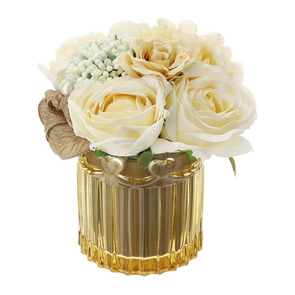 HERVIT - Composizione Floreale Avorio Dia.15Xh16C