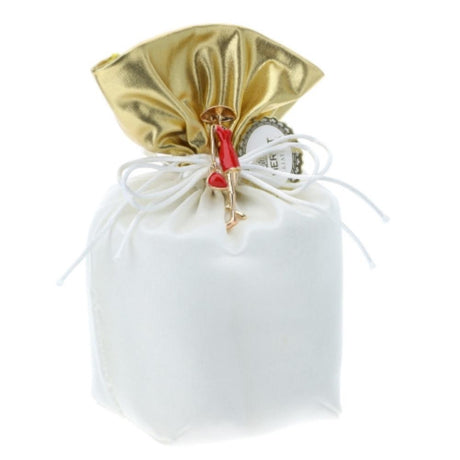 HERVIT - Sacchetto Taffeta' Bianco/Oro Con Lavette Ospite 6X6X14Cm