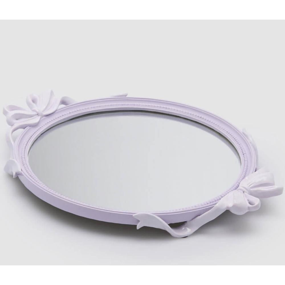 Vassoio ovale lilla con fiocchi in poliresina e piano a specchio (51 x 39 x 6 cm) che unisce charme romantico e funzionalità: la cornice con fiocchi scolpiti e la finitura pastello valorizzano candele, profumi e bijoux, mentre il piano riflettente amplifica luce e profondità per un effetto scenografico su tavolo, consolle o toilette. Firmato Edg. ✨