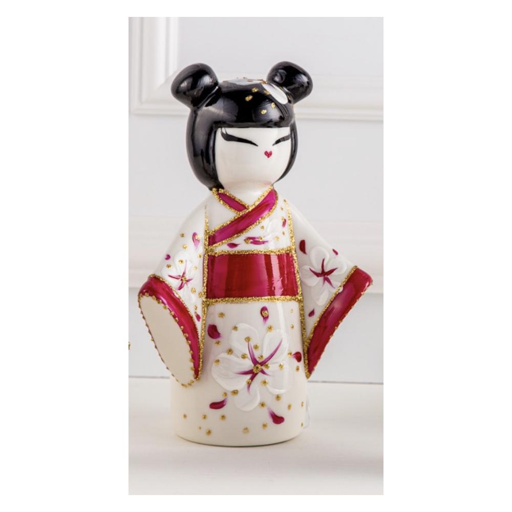 SHARON - Kokeshi Della Generosita'Fondo Bianco (B.Co/Fuxia)6X18H Profumatore In Porcellana