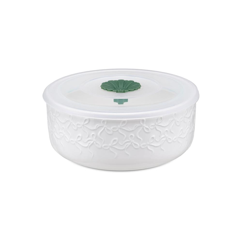 Ciotola in porcellana con coperchio in silicone a fiocco Ø13 cm: eleganza e praticità in un unico accessorio 🥣. Firmata Porcellana Bianca, unisce il design pulito del bianco con la funzionalità di un tappo in silicone dal carattere decorativo, ideale per presentazioni curate e per la quotidianità.