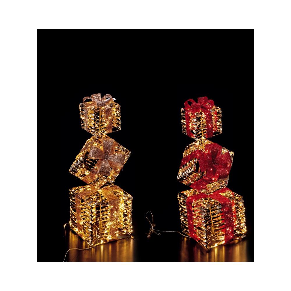 REGALO ITALIANO SRL - Torre Pacchi Luminosi Fiocco Oro 400L 25X25X77 [Rosso]