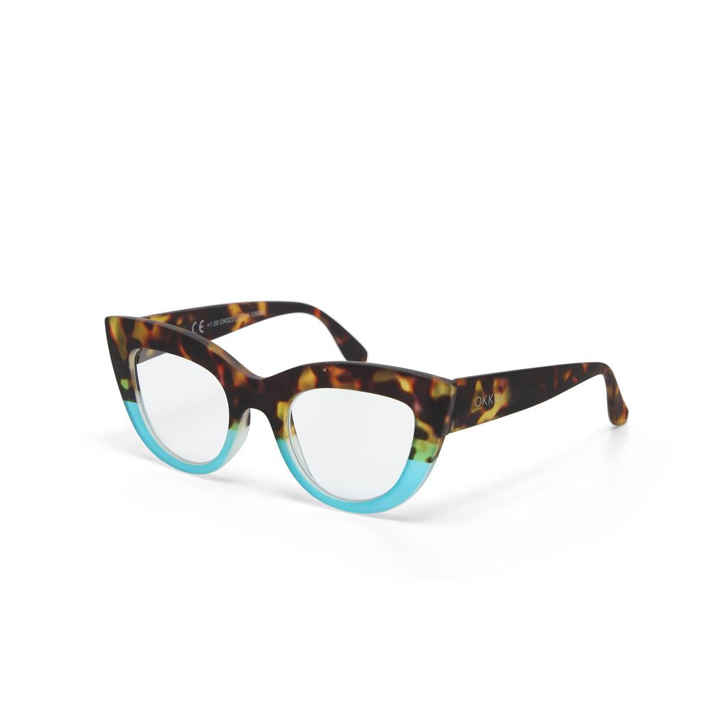 OKKIA - Occhiale Da Lettura Premontato Gatto Big Frame - Montatura Soft Touch Col. Havana Blue - Gradaz. 3.00