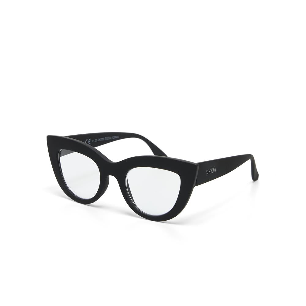 Occhiali da lettura premontati cat‑eye oversize in colore nero, con finitura soft touch e gradazione +3.00, firmati Okkia. 👓