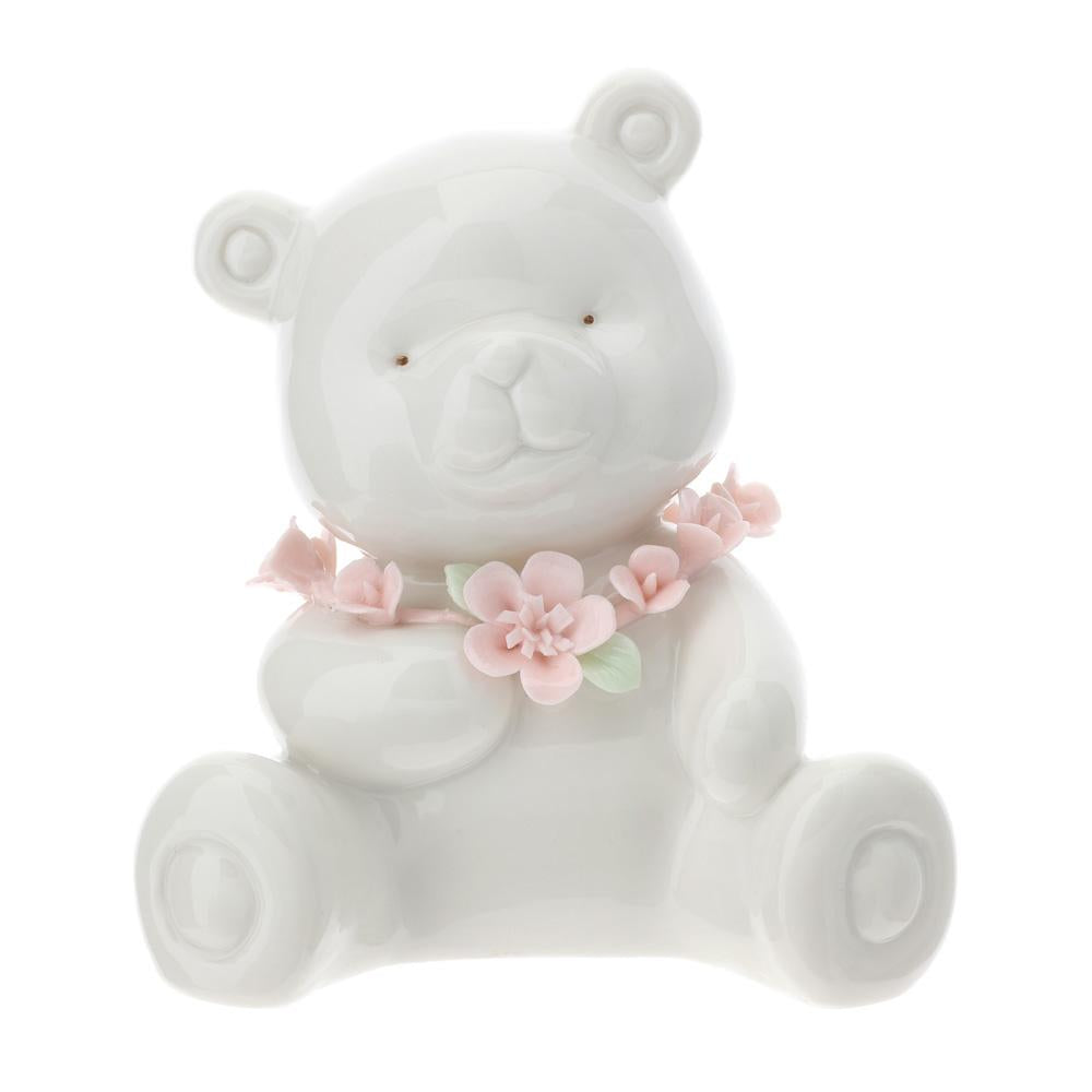 The bear, 11 cm tall, stands out for its ornate collar , a detail that adds further charm to this precious piece. Its high-gloss white finish highlights the soft, rounded lines of the design, while the superior quality of the porcelain ensures durability and strength. 👌