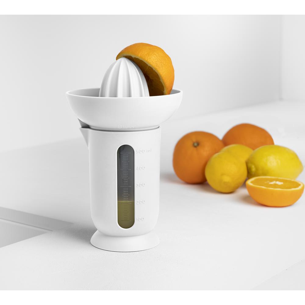Il design compatto ottimizza la resa in pochi gesti e si adatta a ogni cucina grazie al look bianco artico pulito e moderno. La struttura leggera facilita la presa e rende il set ideale a colazione, per ricette, dressing e cocktail. Progettato da Blim.