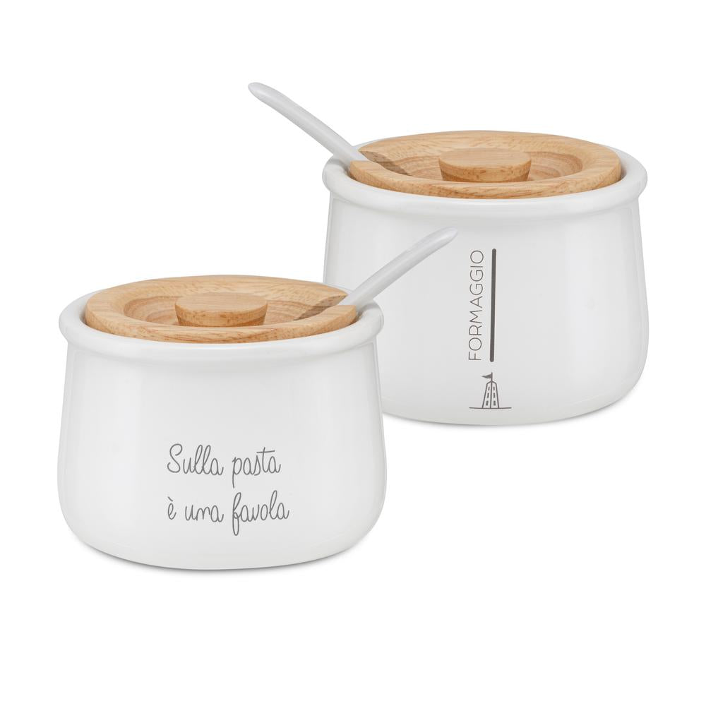 PORCELLANA BIANCA - Gli Onesti Portaformaggio Grattugiato In Stoneware E Legno Di Quercia 200Ml