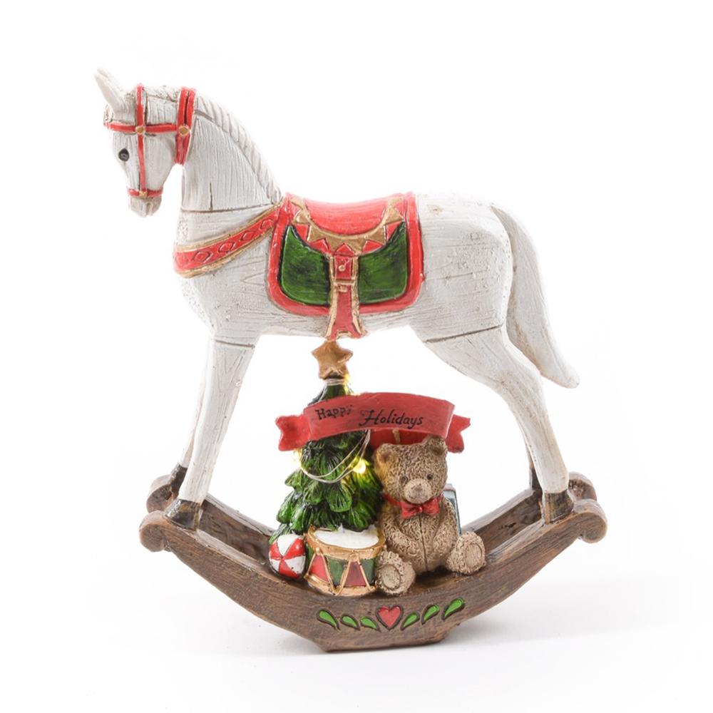 DO-HOME - Cavalluccio A Dondolo Grande In Resina Con Luci 26.5X8.5Xh30Cm