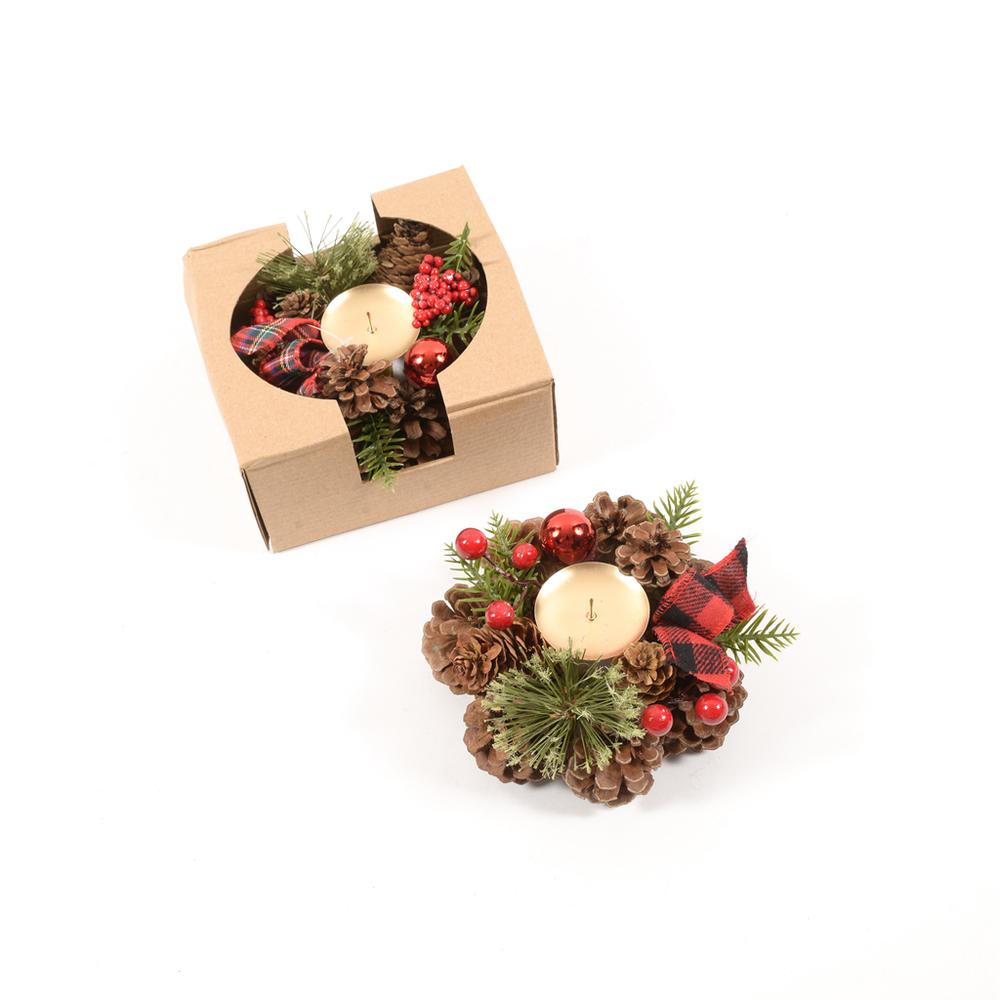 Realizzato con cura per i dettagli e l'estetica, questo portacandela presenta elementi naturali come pigne, aggiungendo un tocco rustico che si abbina perfettamente al tuo arredamento delle feste. 🌟 Scopri l'arte di trasformare il tuo spazio con un accessorio unico che non è solo bello, ma anche funzionale.
