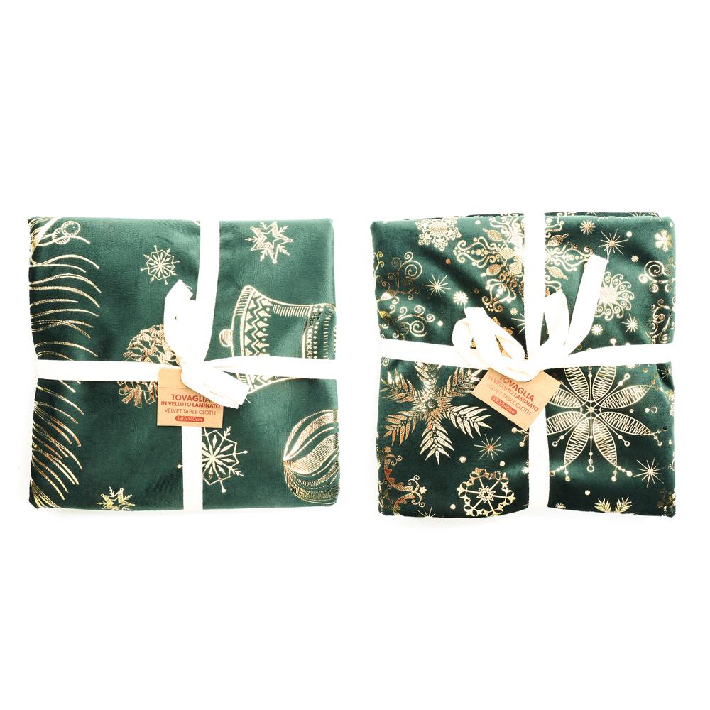 Scopri l'eleganza della tovaglia in velluto verde impreziosita da un raffinato laminato oro, perfetta per la tua tavola natalizia. Realizzata con materiali di alta qualità da Do-Home, questa tovaglia 140x180 cm trasforma ogni pasto in una vera esperienza di stile e sofisticatezza. 🌟