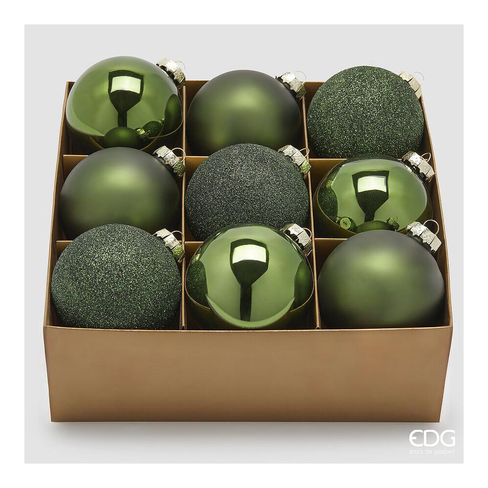 Un mix curato di texture per un albero raffinato: questo set da 9 palline in vetro Ø 8 cm combina finiture opache, lucide e glitter per creare profondità visiva e riflessi avvolgenti. La qualità del vetro valorizza le luci e dona un tocco scenografico istantaneo, ideale per ambienti classici o contemporanei, firmate Edg.