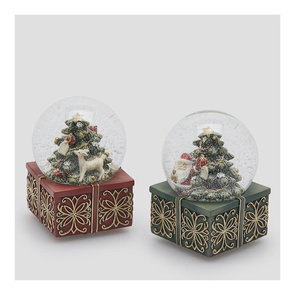 • Sfera d’acqua natalizia con Babbo Natale e cerbiatto, effetto neve/glitter