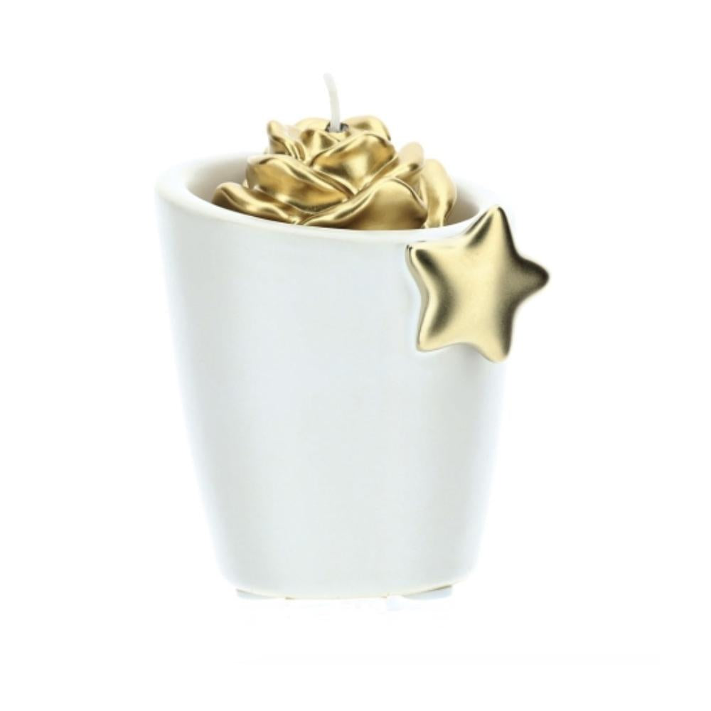 HERVIT - Portavelas de gres blanco estrella dorada 8 cm