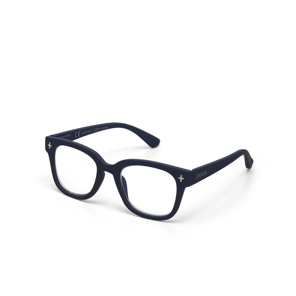 Occhiali da lettura premontati “Giovanni” Soft-Touch con cerniere a molla e lenti Blue Light, colore Midnight +1.50 (linea Magframe). Firmati Okkia, uniscono stile essenziale e comfort quotidiano per chi alterna pagine stampate e schermi con frequenza 👓.