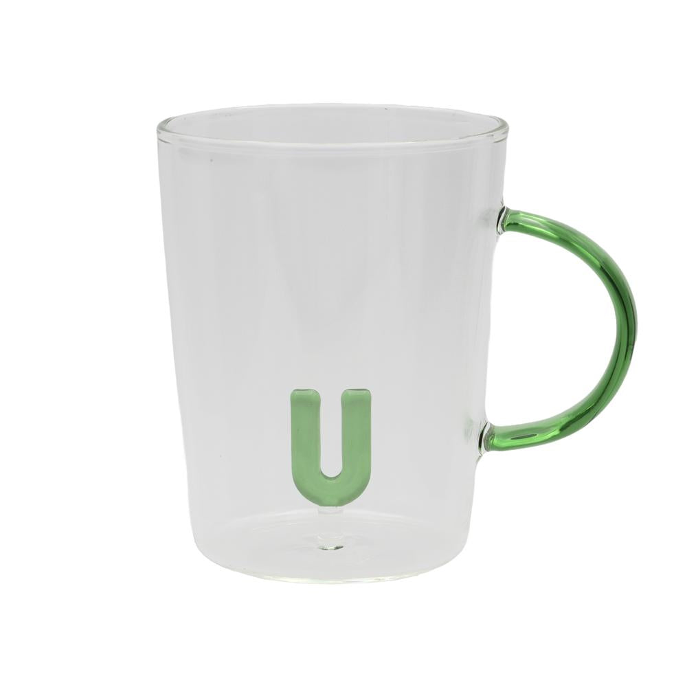 PORCELANA BLANCA - Taza Allalettera Vidrio Borosilicato Letra "U" 440 Cc