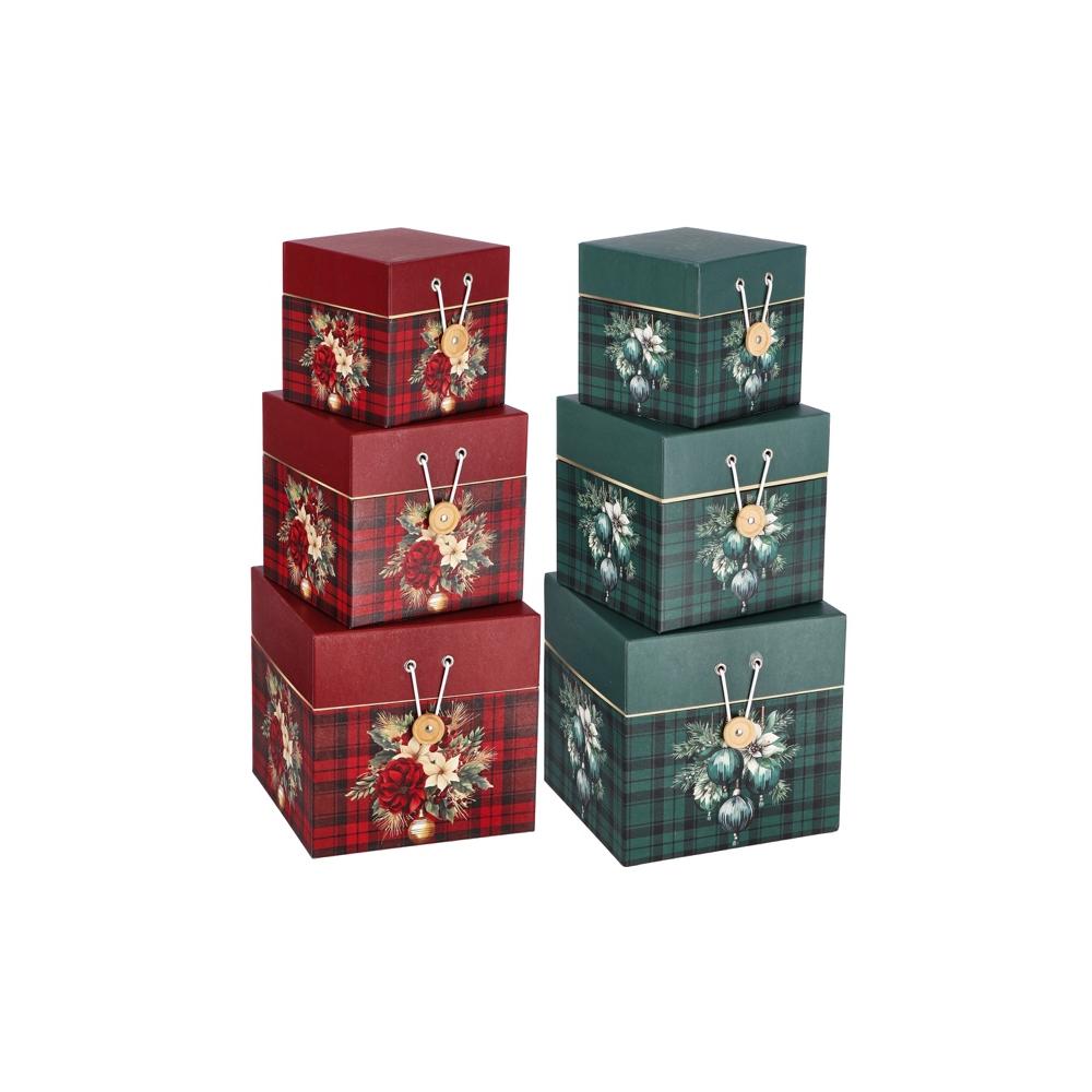 REGALO ITALIANO SRL - S/3 Scatole Quadrate Rivestite In Carta Stampata 12X12X12H 15X15X15H 18X18X18H [Rosso]