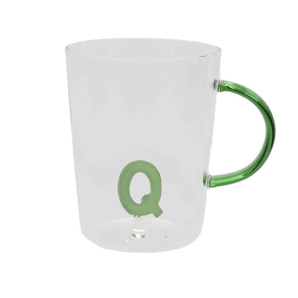 PORCELANA BLANCA - Taza Allalettera Vidrio Borosilicato Letra "Q" 440 Cc