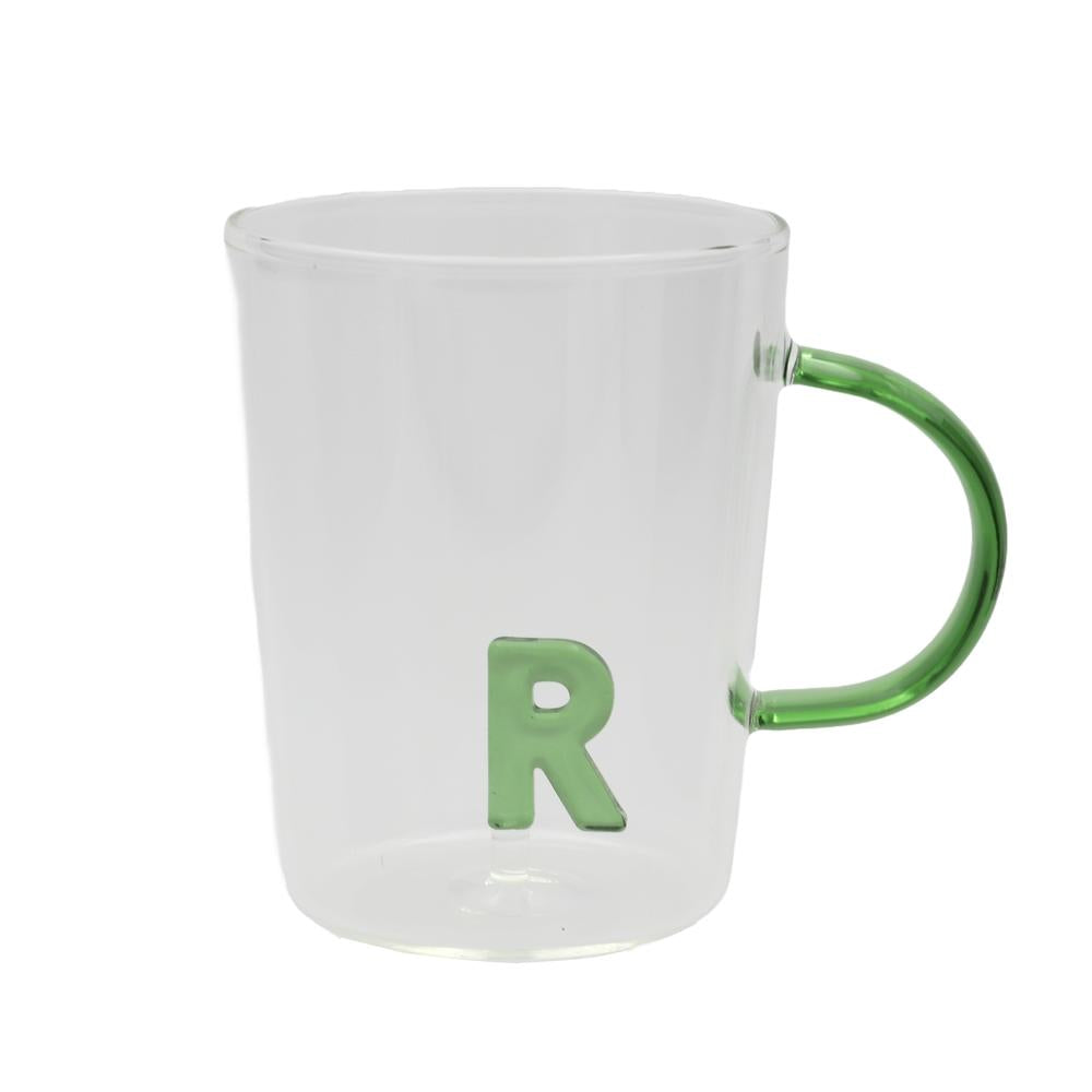 PORCELANA BLANCA - Taza Allalettera Vidrio Borosilicato Letra "R" 440 Cc
