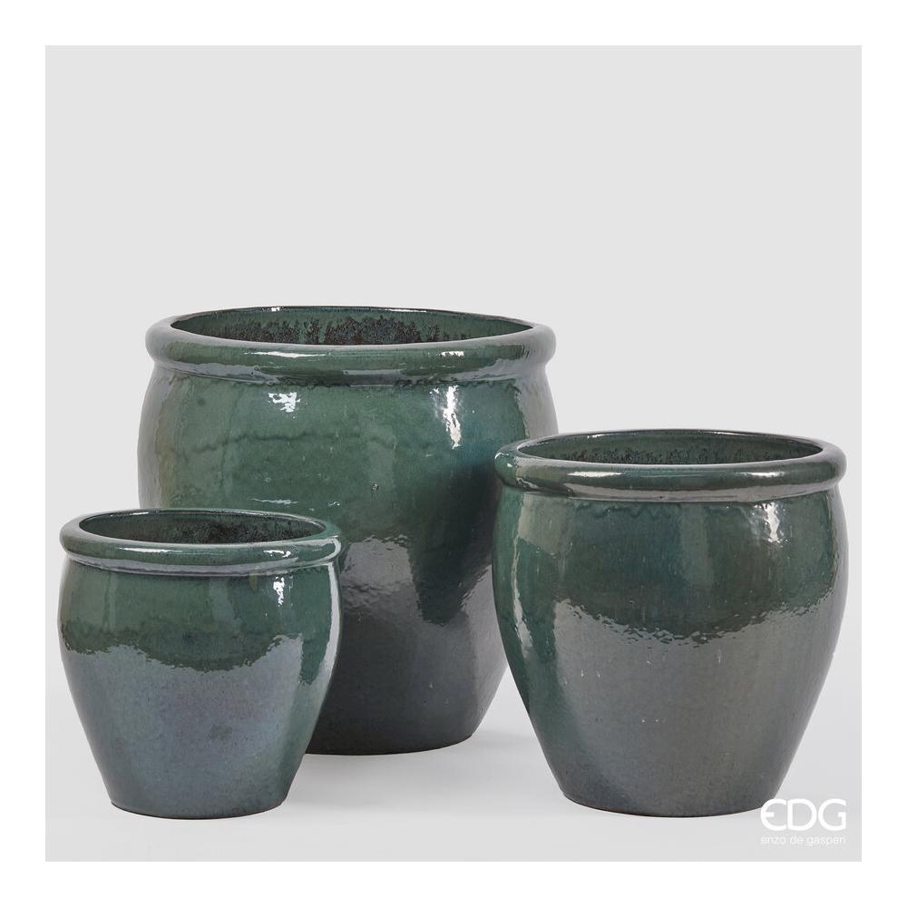 EDG - Vaso Glaze Bombato In Ceramica H.64 D.40 Dark Green [Piccolo]