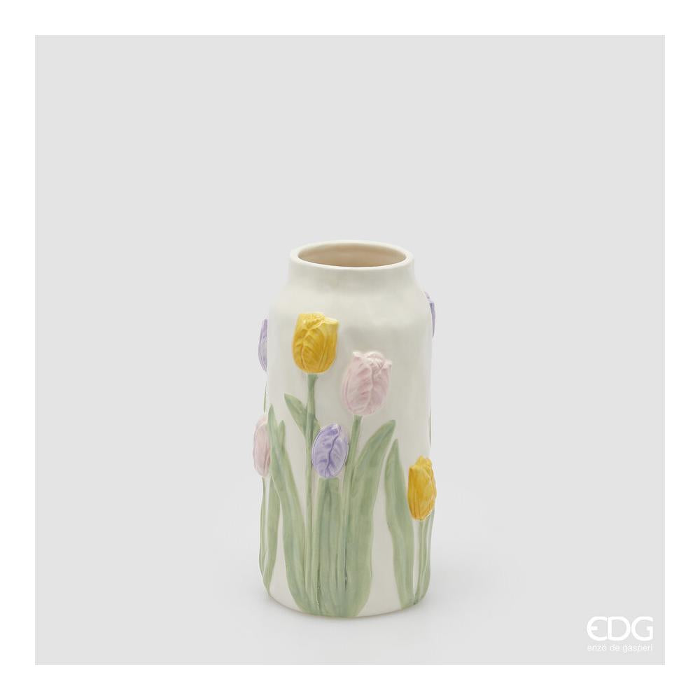 EDG - Vaso Tulipani Cilindro H.23 D.12 In Ceramica Multicolor
