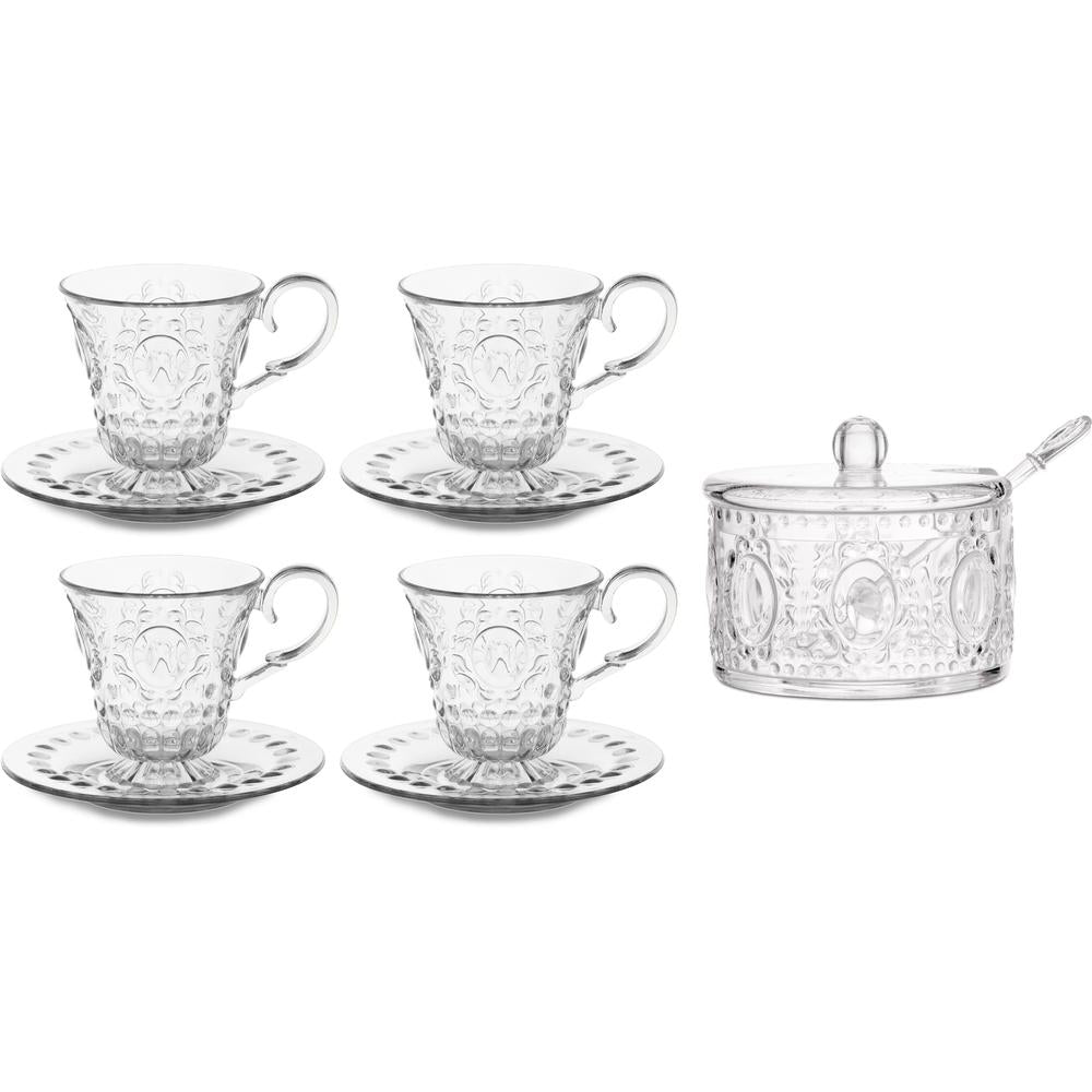 BACI MILANO - Juego de 4 tazas de café y azucarero con cuchara transparente