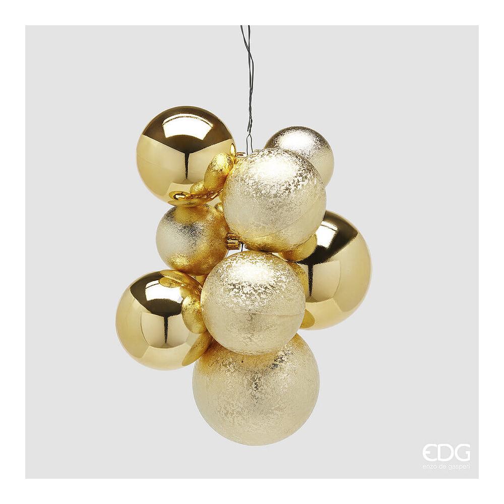 Un set coordinato di dieci addobbi a grappolo con texture rigata che cattura la luce e dona profondità scenografica all’albero e alle composizioni. Linee pulite e finitura luminosa per un look elegante e attuale, firmato Edg.