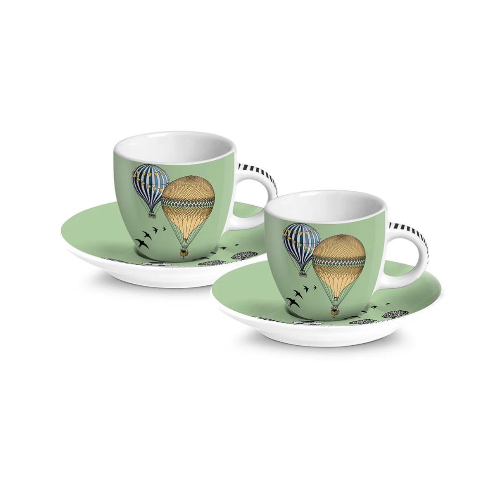EGAN - Set 2 Tazze Caffe' C/Piattino Giramondo Verde In Porcellana Ml80