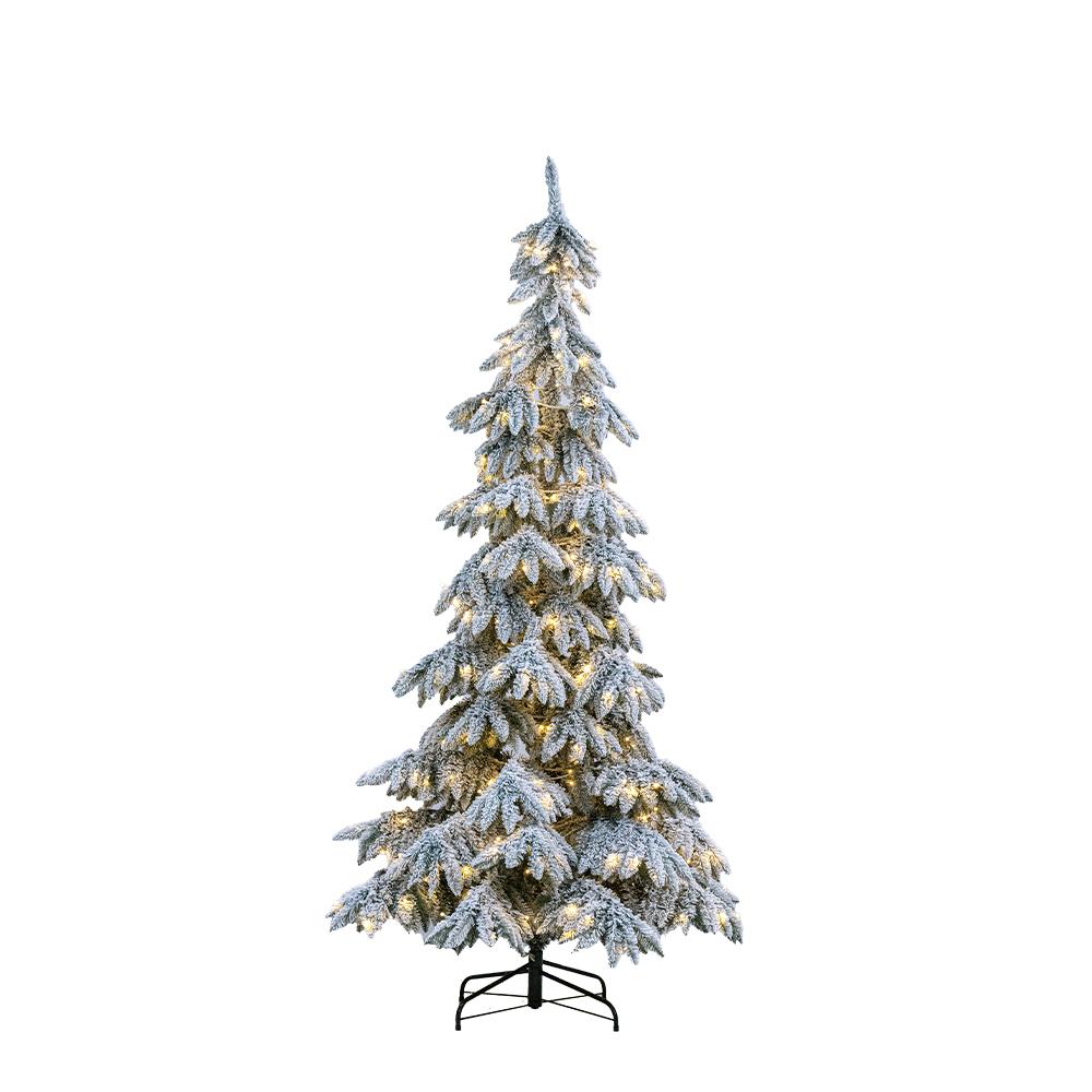Albero di Natale Tundra verde innevato 240 cm con 450 LED integrati: un design scenografico che porta in casa l’atmosfera dei boschi nordici. Le luci distribuite in modo uniforme avvolgono i rami creando un bagliore caldo e accogliente, perfetto per living, ingressi ampi e allestimenti professionali. 🎄